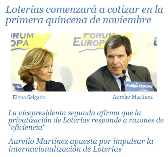 Loterías del Estado, una de las empresas más populares entre los españoles y una auténtica «vaca de ingresos» -traduciendo la terminología anglosajona para este tipo de empresa, cash cown- no se venderá. El Gobierno decidió el miércoles posponer la privatización del 30% de la compañía que debía salir a bolsa en noviembre ante el precio «inadmisible» que, según la vicepresidenta económica, Elena Salgado,....... |