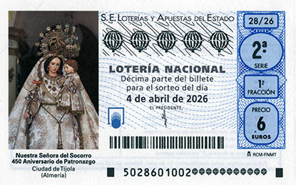 El primer premio del Sorteo nº 28 celebrado este sábado 4 de abril de 2026 ha correspondido al número