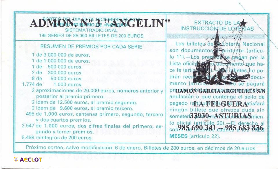 Administración nº 3 de La Felguera. Lotería Angelín