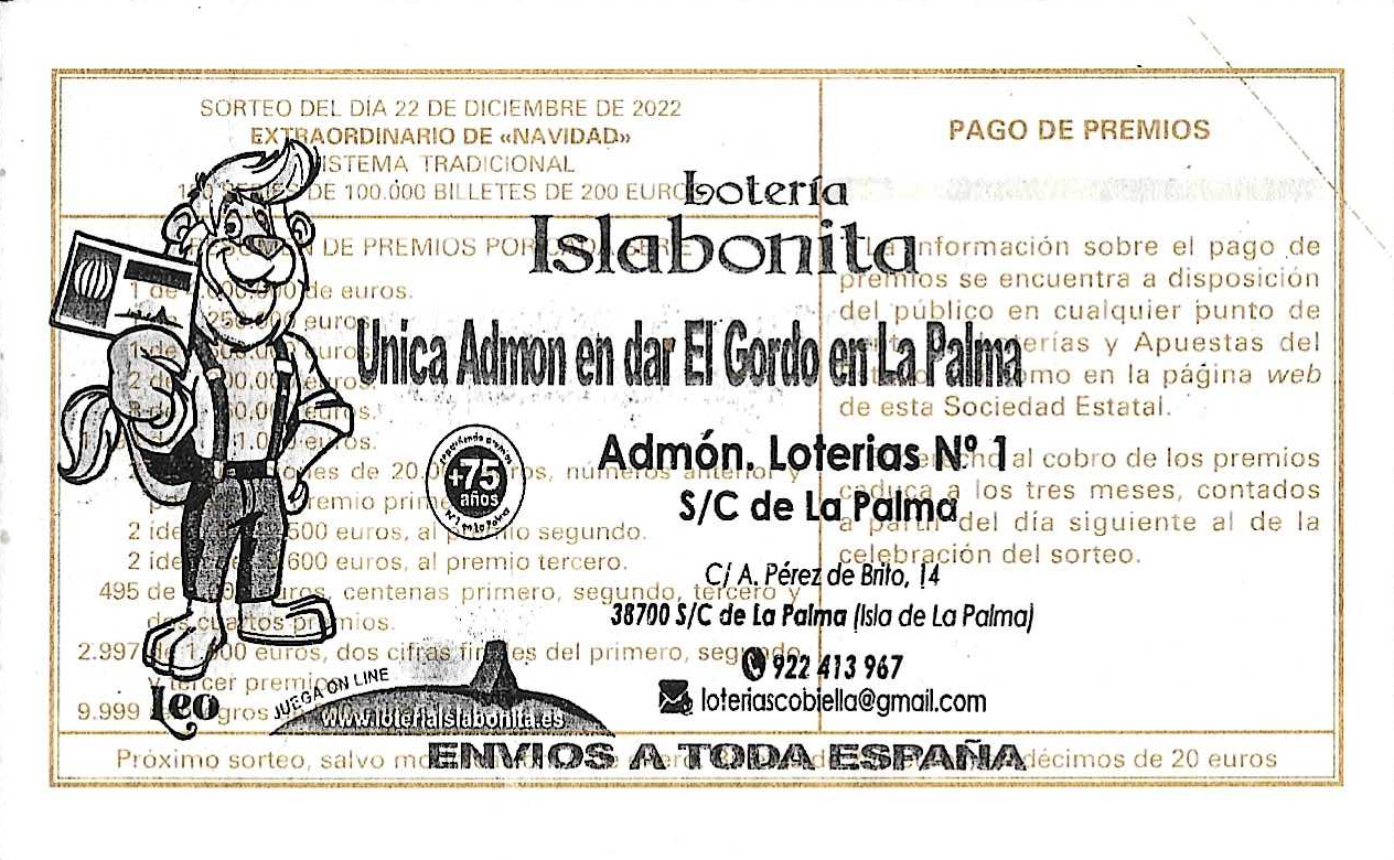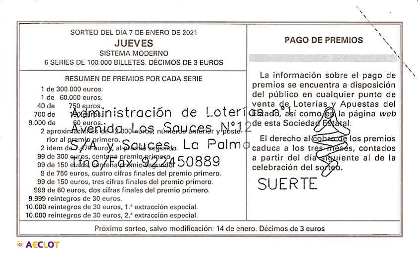 En todas estas poblaciones, a las que hay que añadir Tazacorte y San Andrés y Sauces, es posible comprar lotería en cualquiera de sus respectivas administraciones, las cuales quedan representadas a continuación. El listado con sus datos de contacto, junto con el de todas las de la provincia se puede descargar