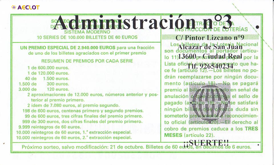 La 1 de Manzanares (cerrada) Los Premios Loterías Membrilla