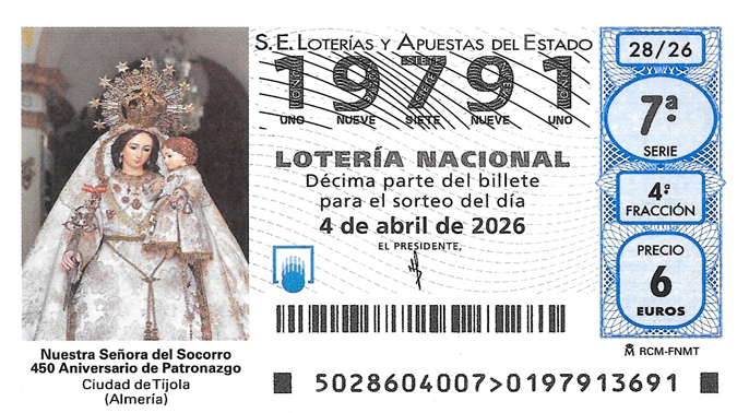 El primer premio del Sorteo nº 28 celebrado este sábado 4 de abril de 2026 ha correspondido al número