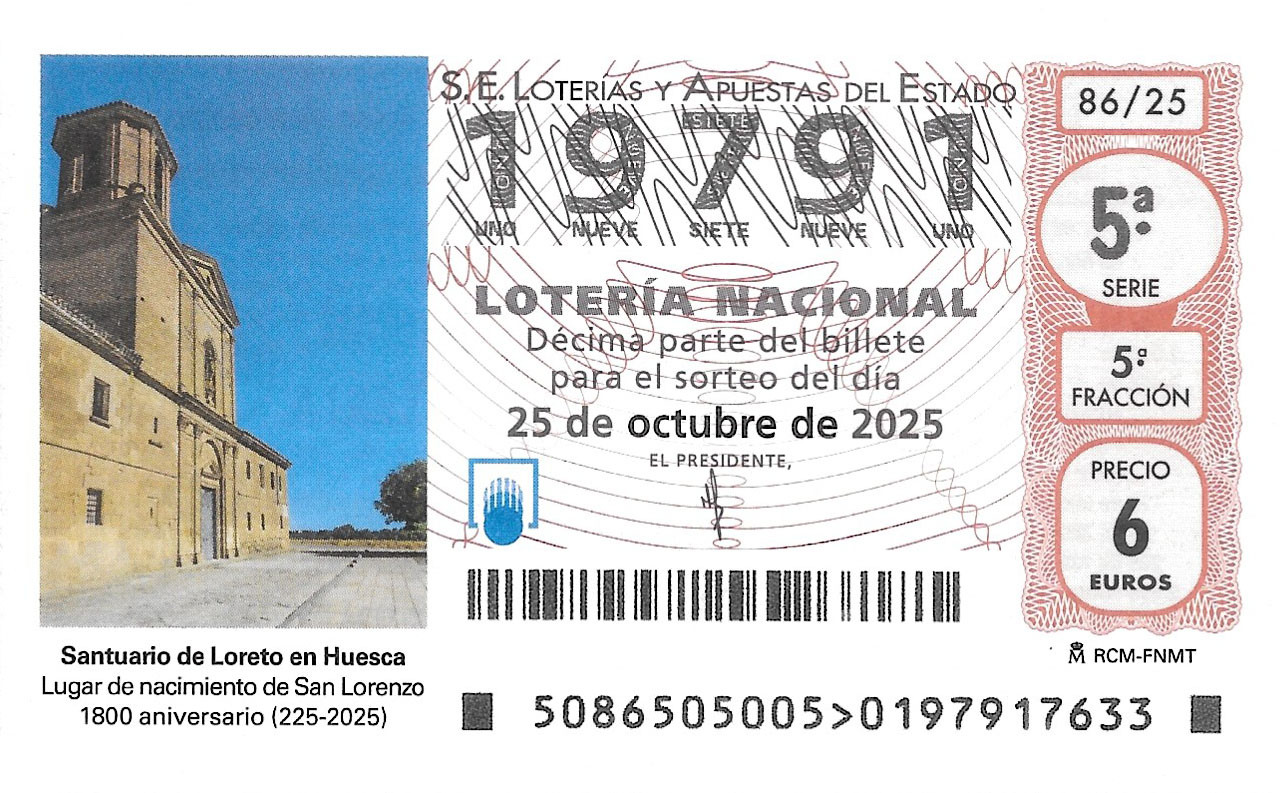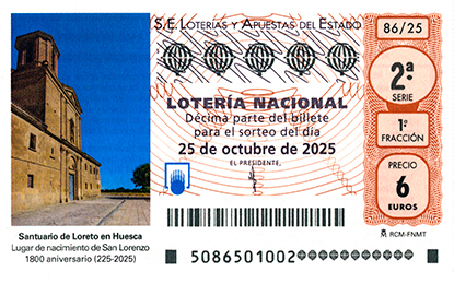 La Lotería Nacional dedica un décimo al Santuario de Loreto en Huesca