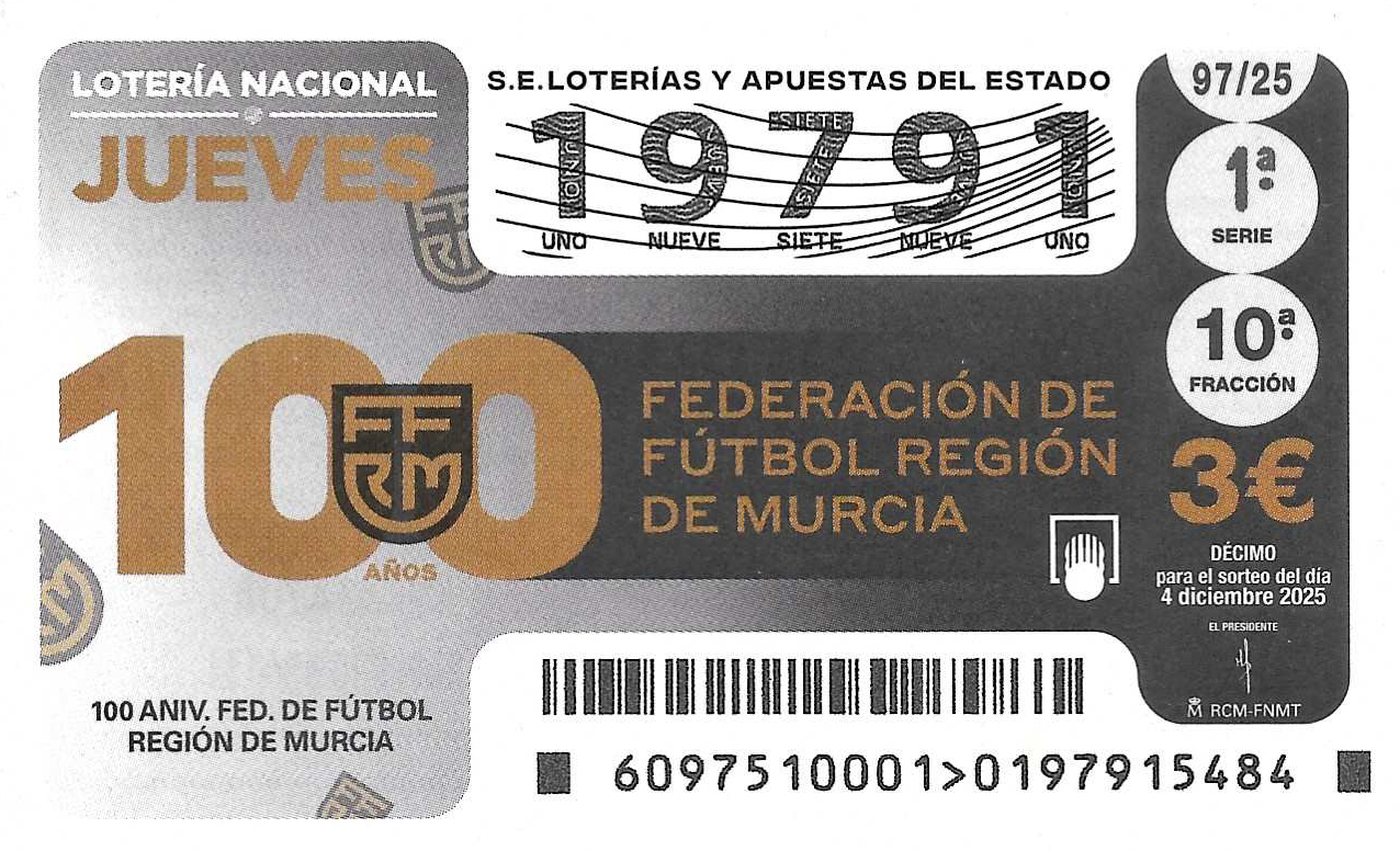 La Lotería del Jueves celebra 100 años de la Federación de Fútbol Región de Murcia